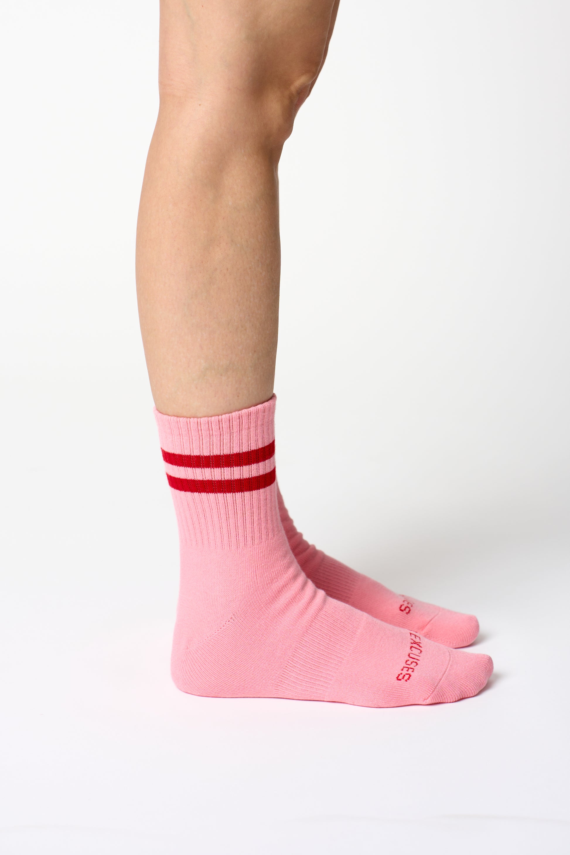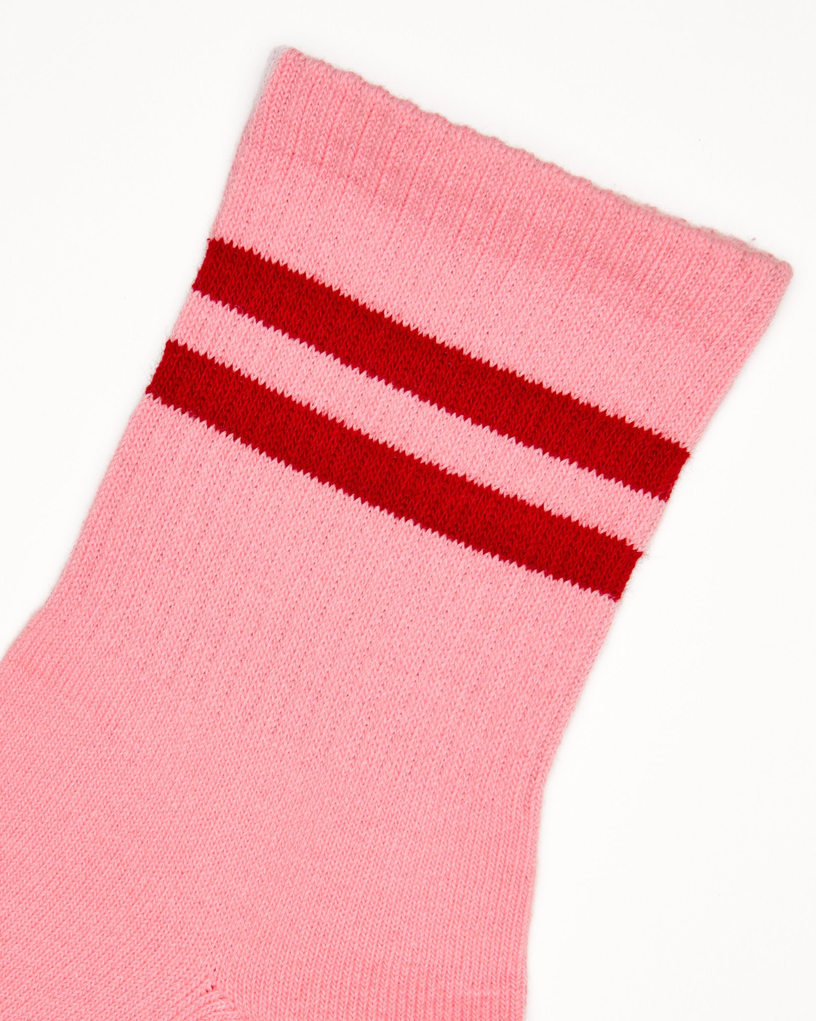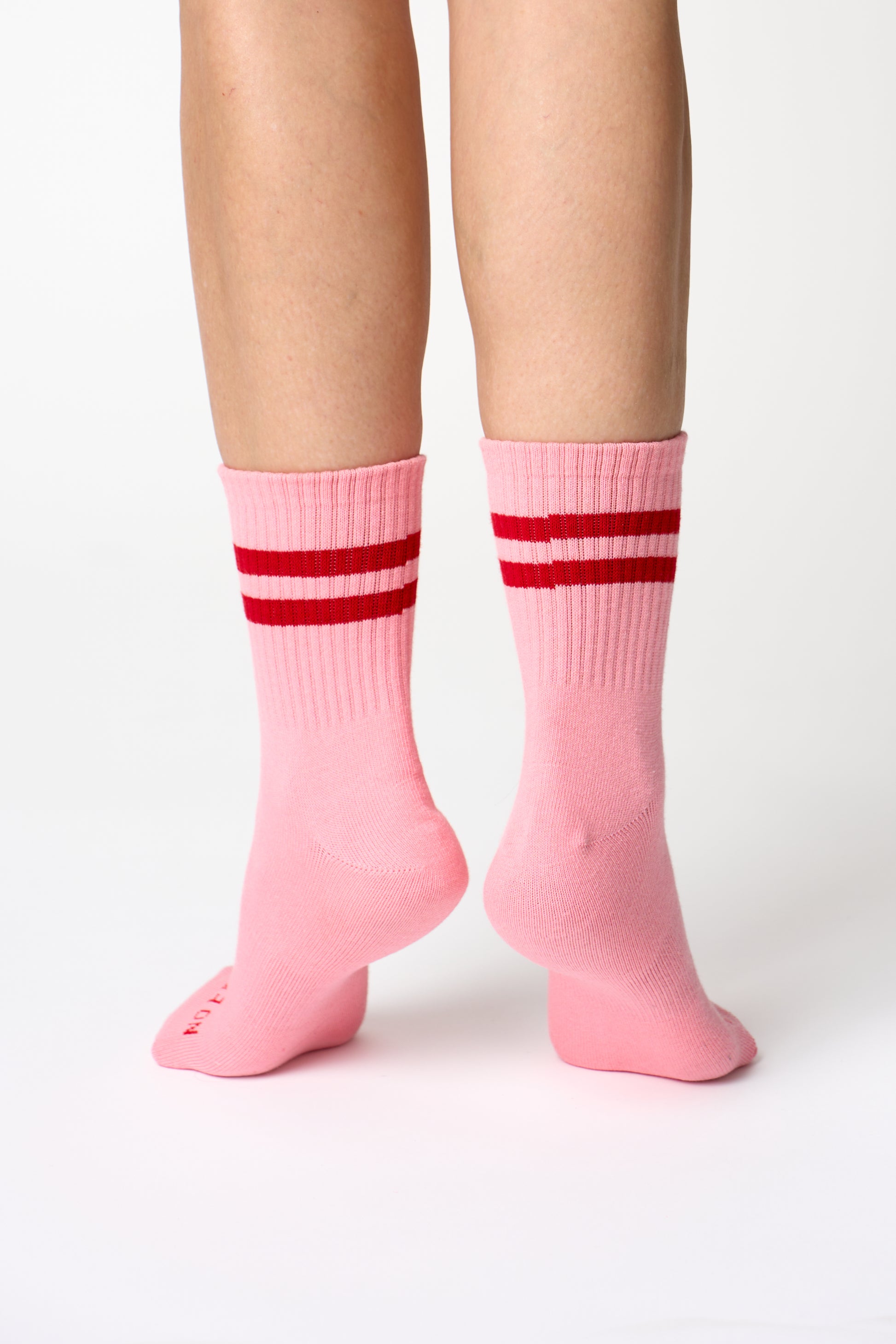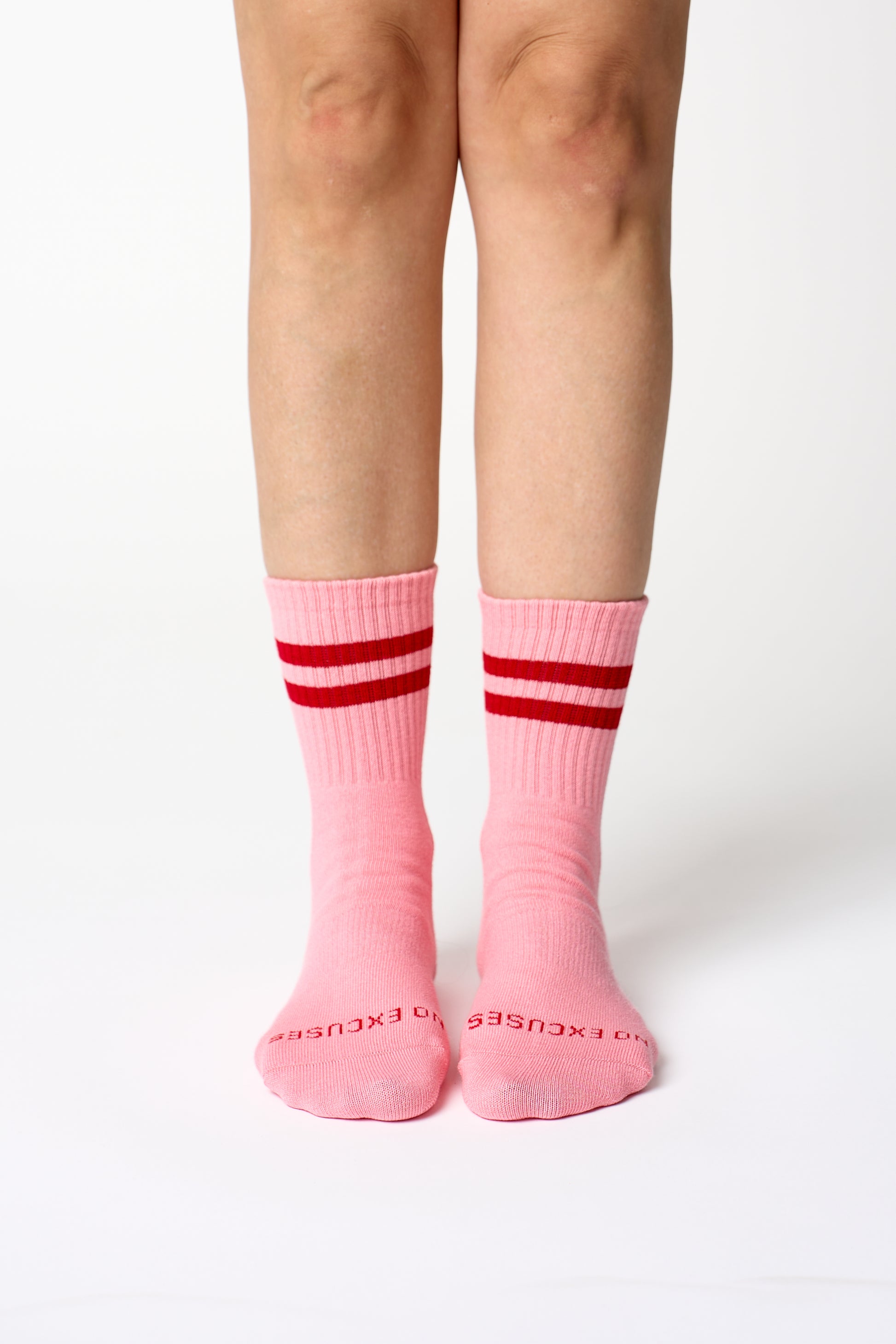 Pretty in pink, lethal on the reformer. That cherry red double stripe means business — and so do you. Wear them to your 6am and let the burn do the talking.