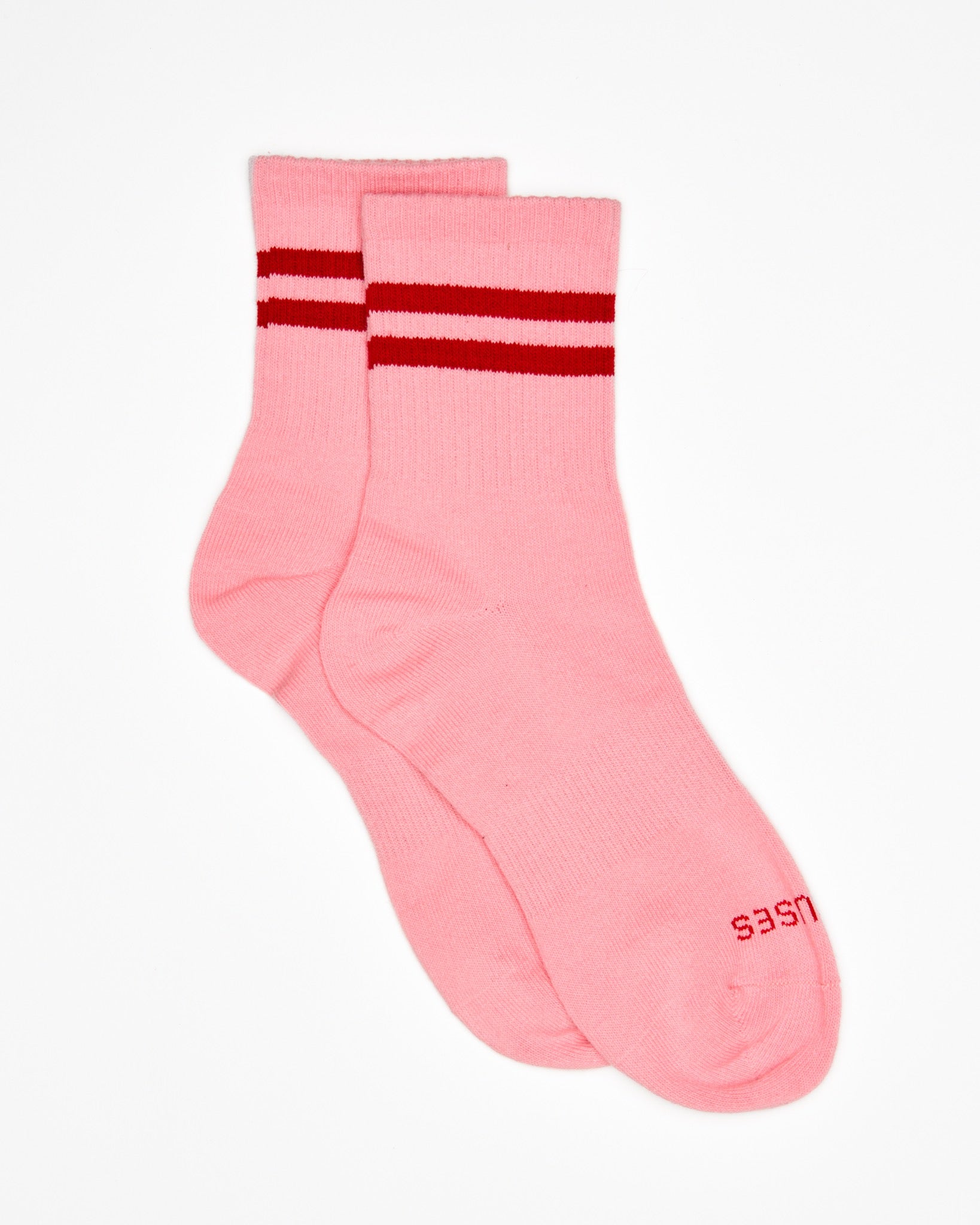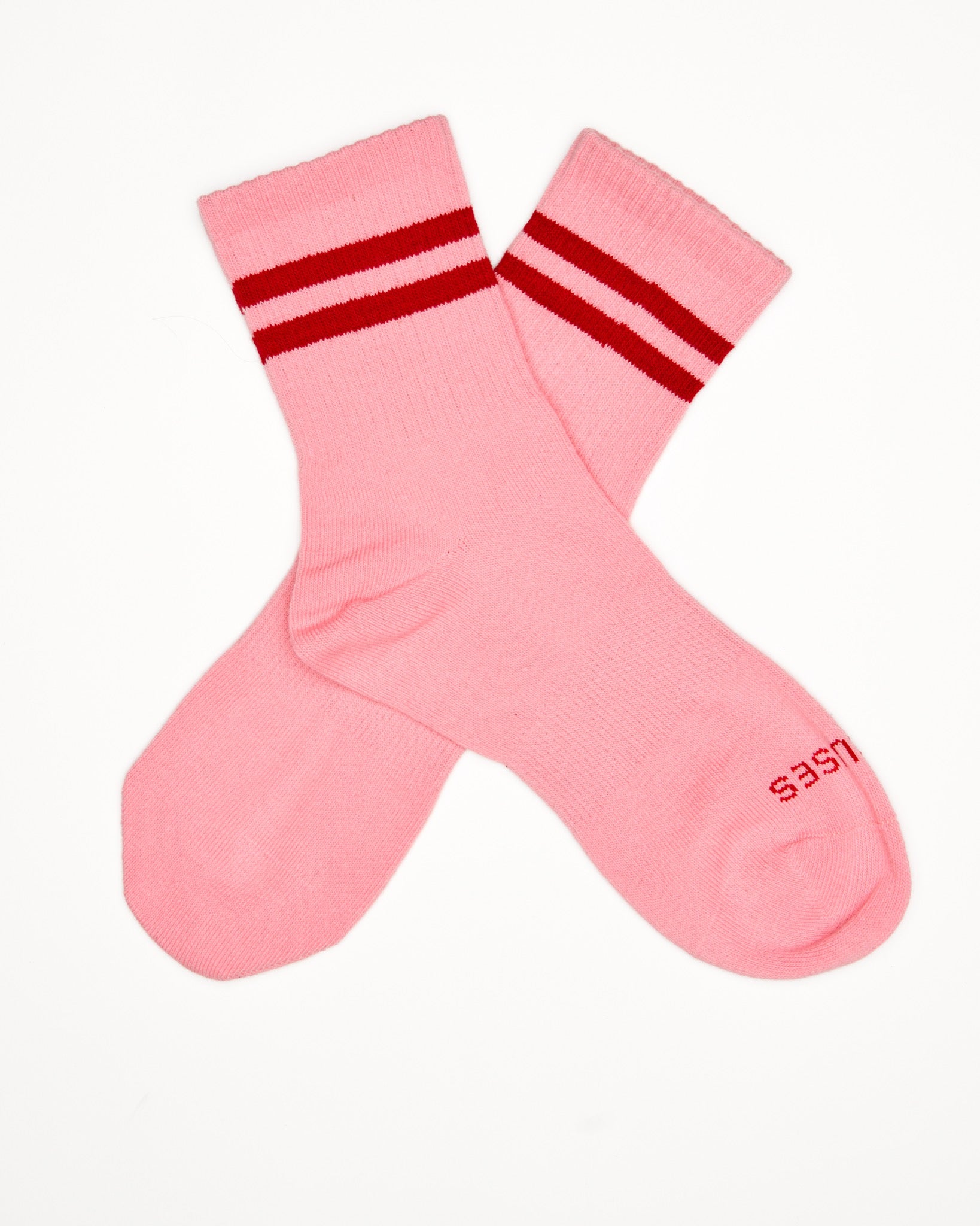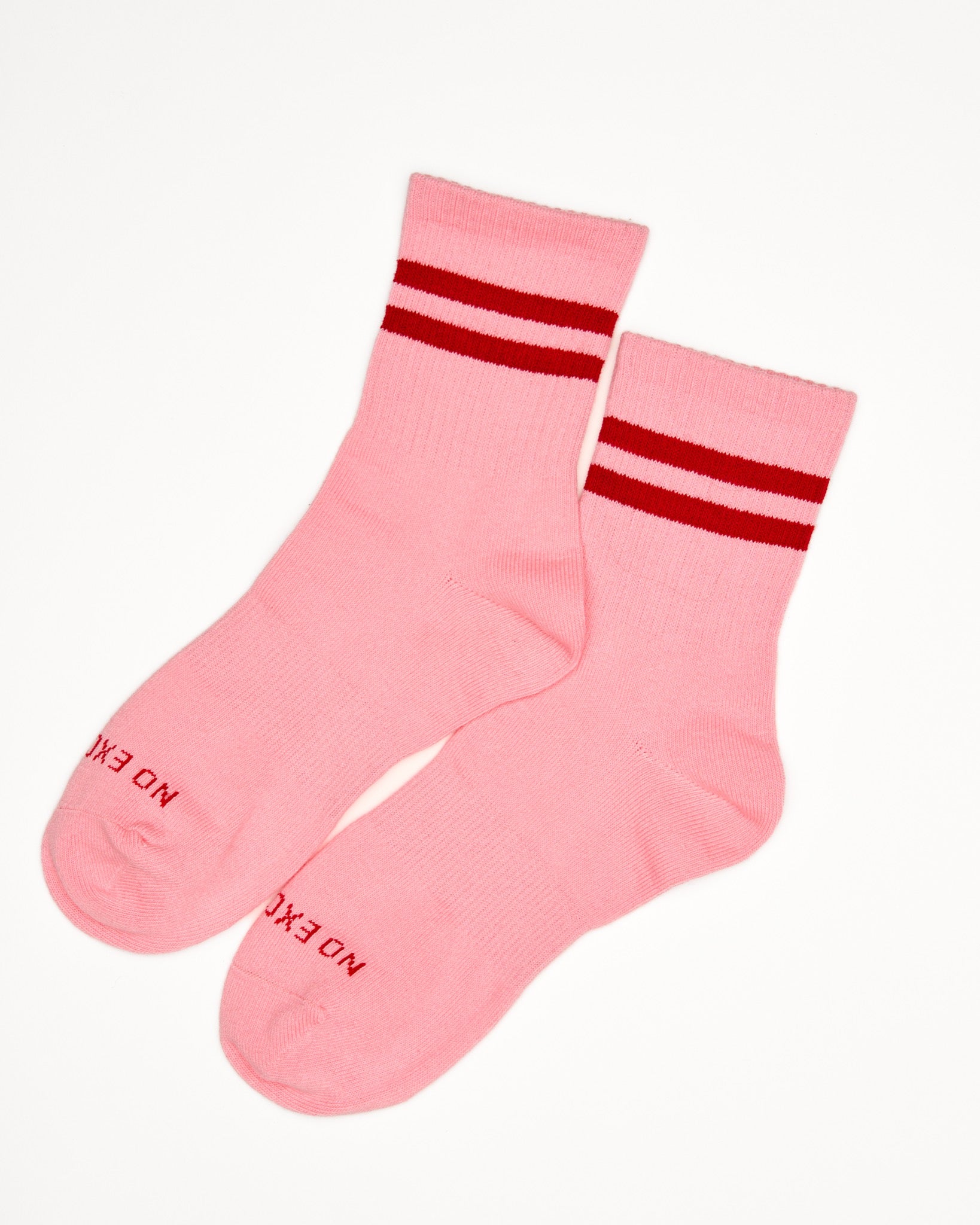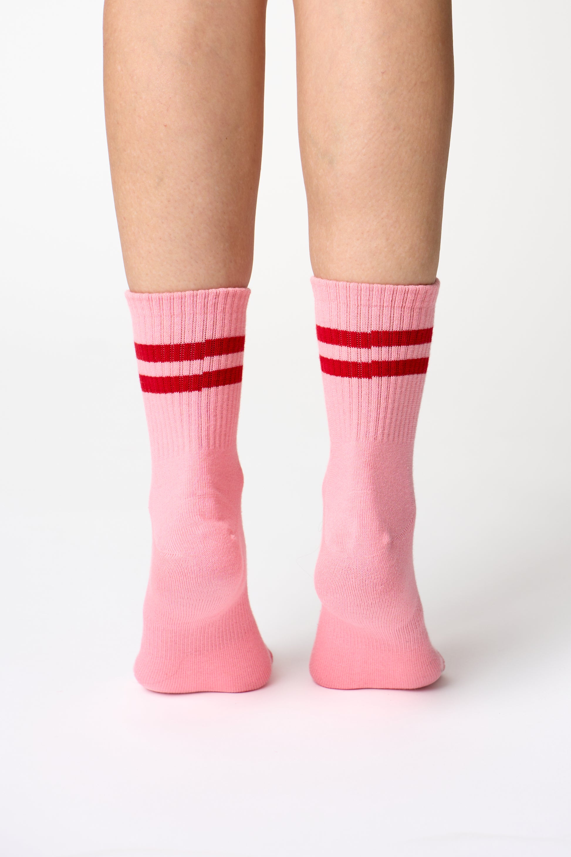 Pretty in pink, lethal on the reformer. That cherry red double stripe means business — and so do you. Wear them to your 6am and let the burn do the talking.