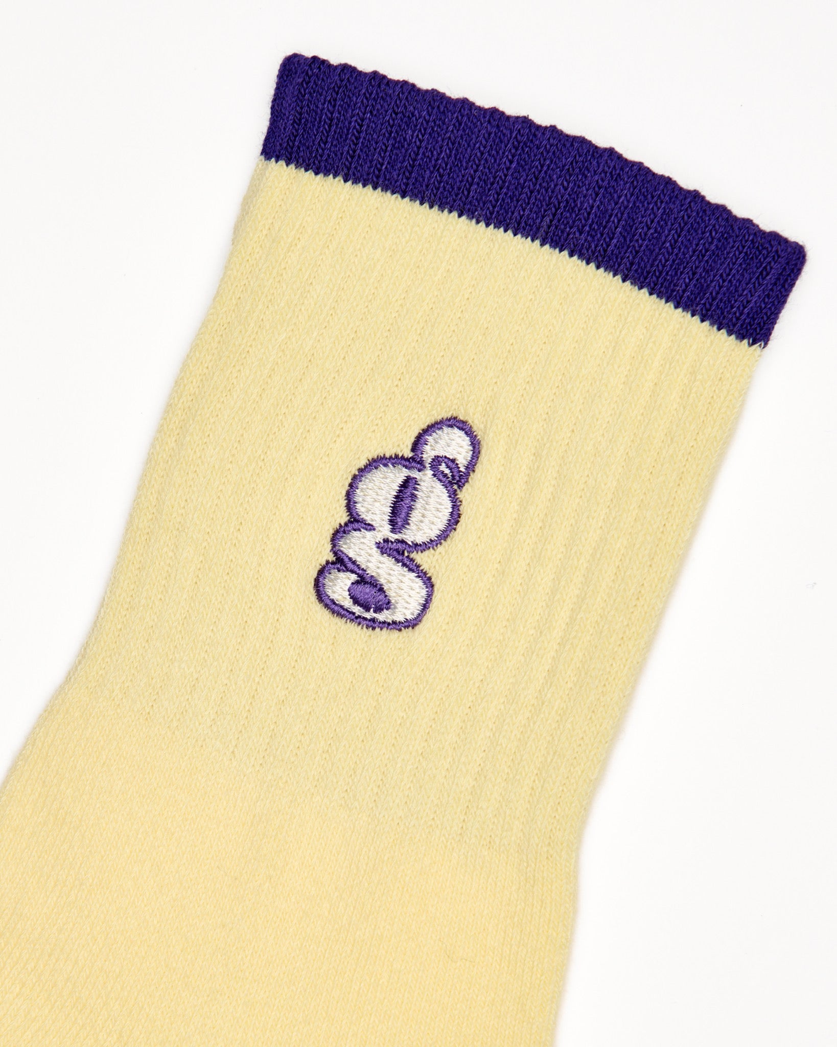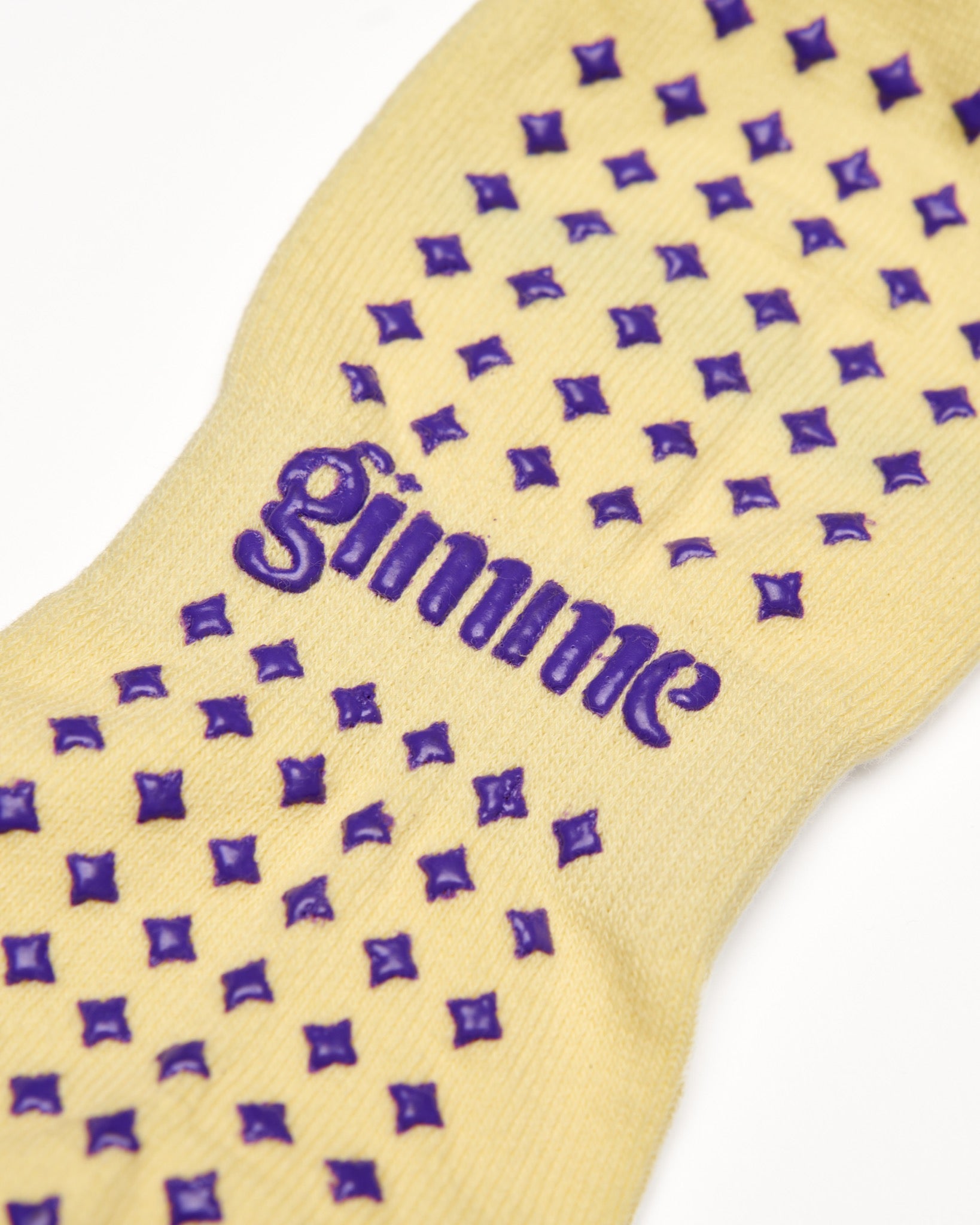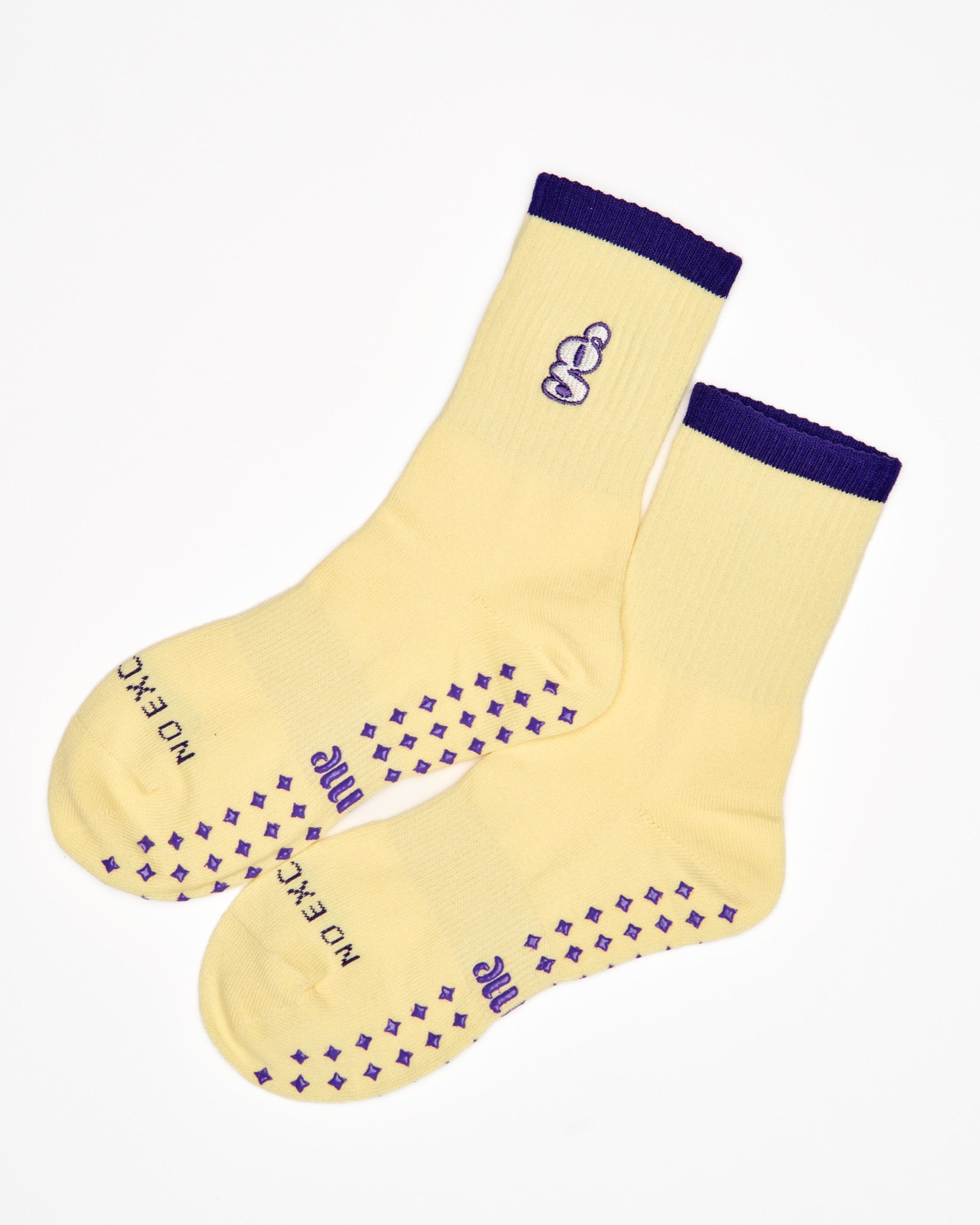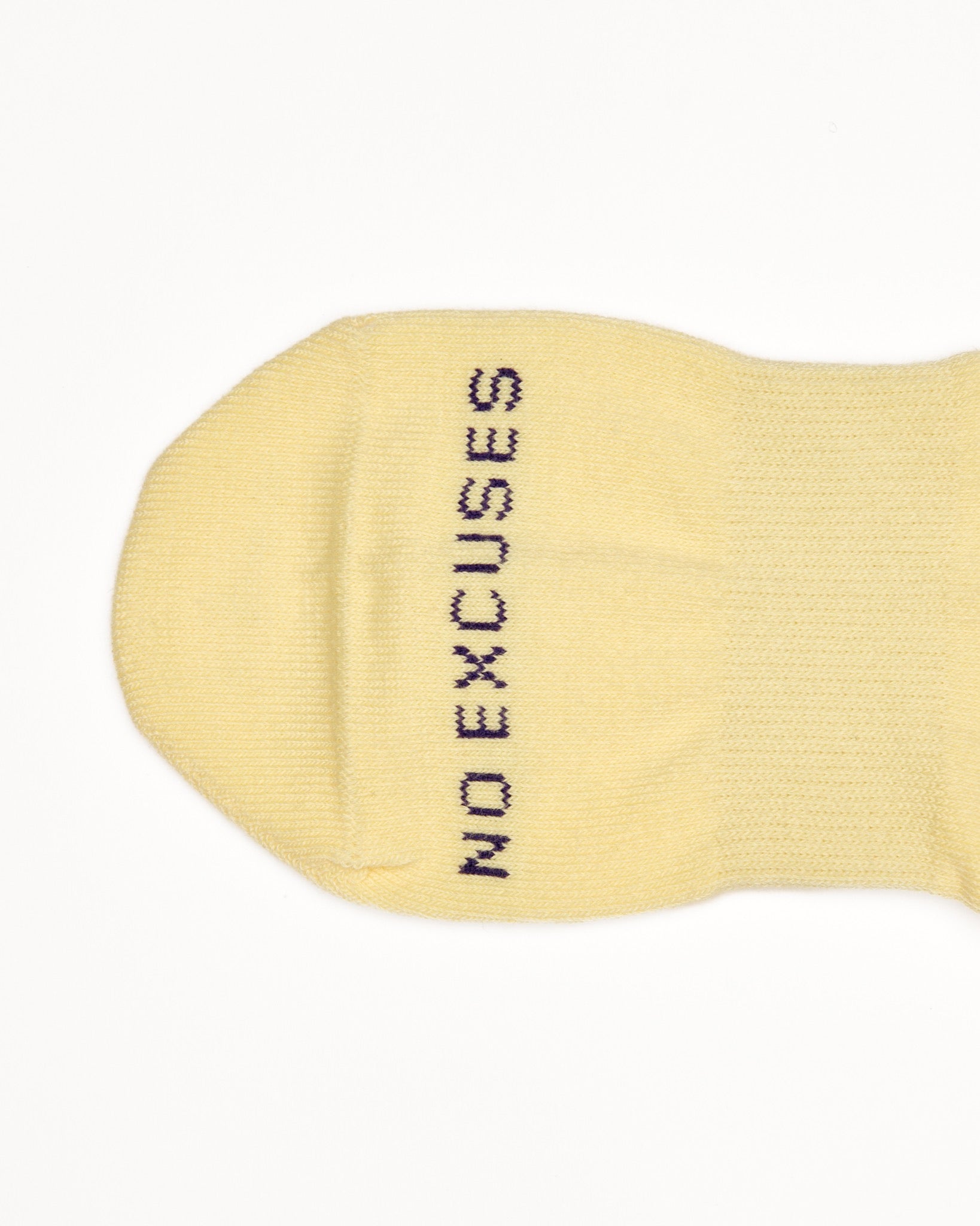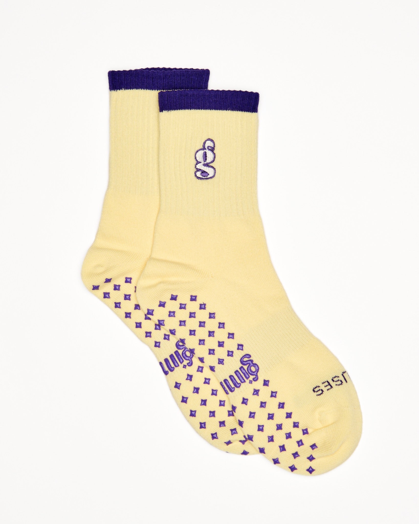 Soft butter yellow with a rich purple cuff — the morning energy you want without the alarm clock attitude. Slip these on and suddenly a 7am class sounds like a great idea.